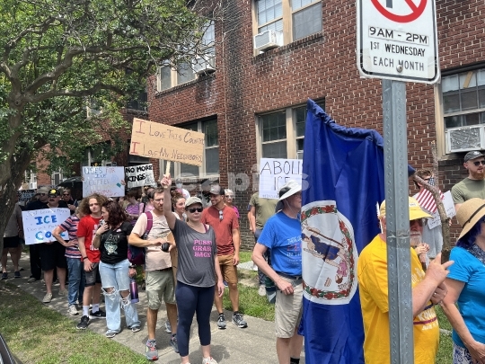 Norfolk, VA, USA - 06-14-2025 Demonstrators taking part in an anti-President Donald Trump no king demonstration in downtown Norfolk city in southeast Virginia, USA.