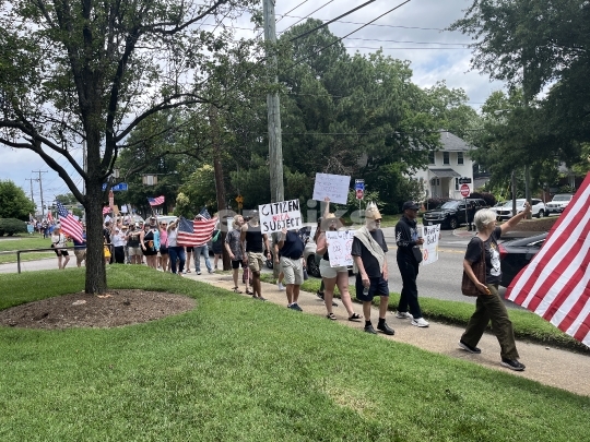 Norfolk, VA, USA - 06-14-2025 Demonstrators taking part in an anti-President Donald Trump no king demonstration in downtown Norfolk city in southeast Virginia, USA.