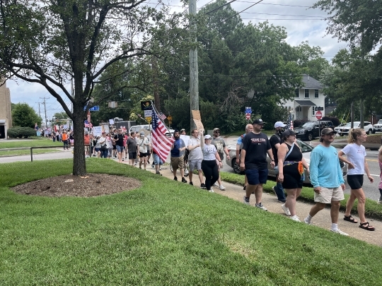 Norfolk, VA, USA - 06-14-2025 Demonstrators taking part in an anti-President Donald Trump no king demonstration in downtown Norfolk city in southeast Virginia, USA.
