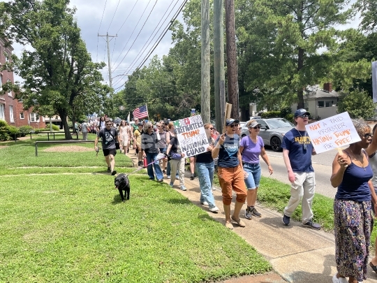 Norfolk, VA, USA - 06-14-2025 Demonstrators taking part in an anti-President Donald Trump no king demonstration in downtown Norfolk city in southeast Virginia, USA.