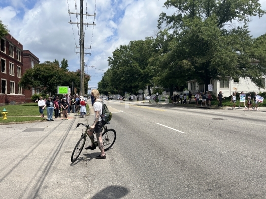 Norfolk, VA, USA - 06-14-2025 Demonstrators taking part in an anti-President Donald Trump no king demonstration in downtown Norfolk city in southeast Virginia, USA.