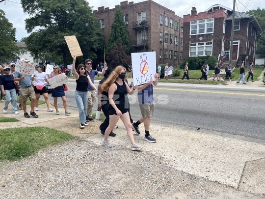 Norfolk, VA, USA - 06-14-2025 Demonstrators taking part in an anti-President Donald Trump no king demonstration in downtown Norfolk city in southeast Virginia, USA.
