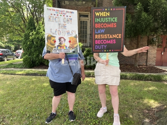 Norfolk, VA, USA - 06-14-2025 Demonstrators taking part in an anti-President Donald Trump no king demonstration in downtown Norfolk city in southeast Virginia, USA.