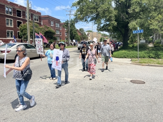 Norfolk, VA, USA - 06-14-2025 Demonstrators taking part in an anti-President Donald Trump no king demonstration in downtown Norfolk city in southeast Virginia, USA.