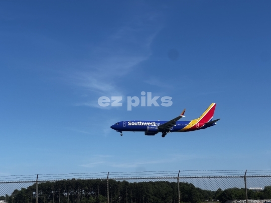 Norfolk, VA, USA- 06-16-2024 A Southwest Airlines Boeing 737 about to touch down in Norfolk airport in Virginia state, USA.