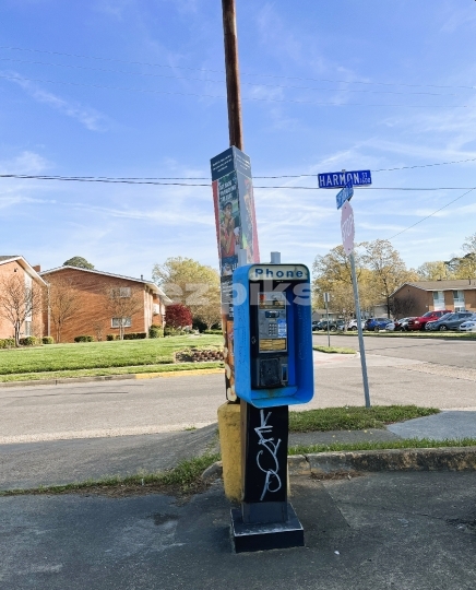 Norfolk, VA, USA - 04-08-2024: A deserted and broken pay-phone in residential neighborhood in downtown Norfolk city in south eastern Virginia State, USA.