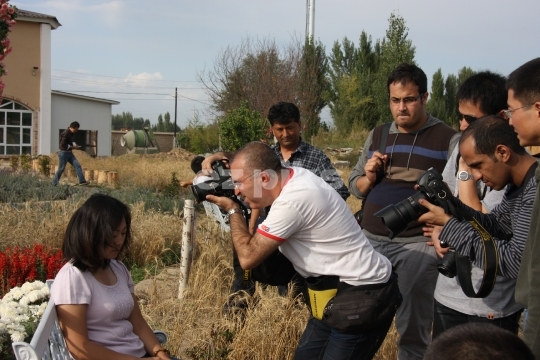 Xinjiang, China - 09/18/2011: A Chinese model posing for photographs and photographers.
