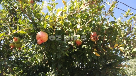 Pomegranates on tree.