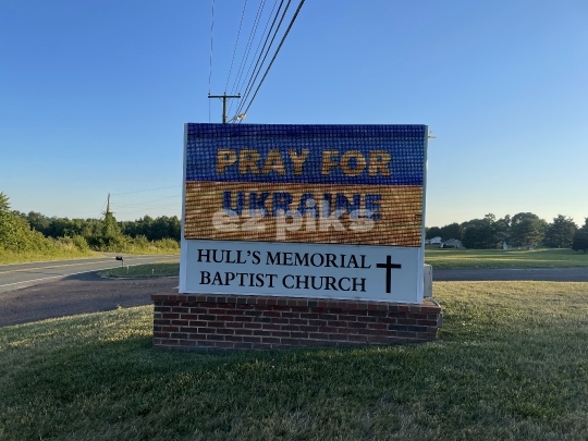 Fredericksburg, VA, USA - 05072025 A billboard reads Pray for Ukraine outside a church in Fredericksburg city in Virginia, USA.