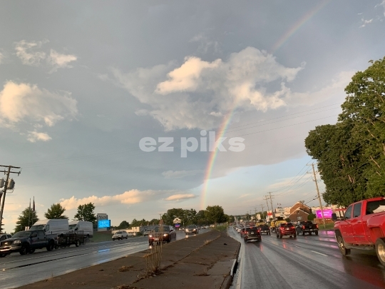 Stafford, VA, USA - 05072025 A rainbow appearing in sky after spring rainfall.