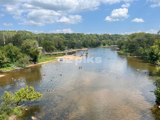 Summer view of Rappahannock river shore in Fredericksburg, VA, USA.