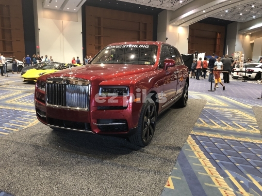 Washington DC, USA - 04-13-2019 A burgundy Rolls-Royce Cullinan SUV displayed at Washington DC Auto Show of 2019.