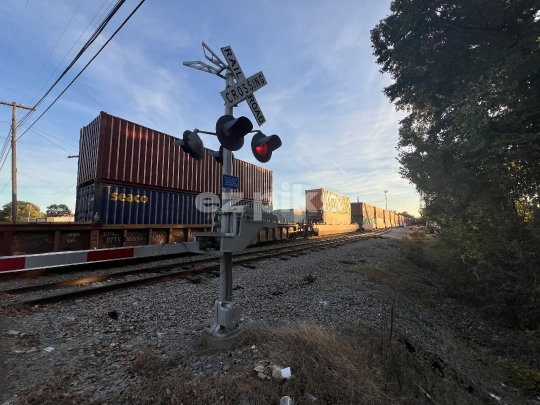 Portsmouth, VA, USA - 10-28-2024 Shipping containers belong to different companies loaded on a freight train.