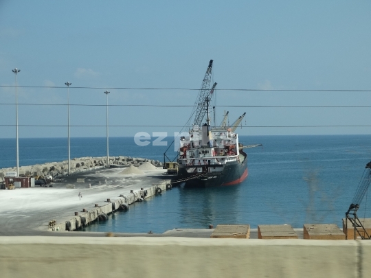 Sidon, Lebanon - 08092014 A ship is seen at the pier in the coastal city of Sidon south of Beirut.