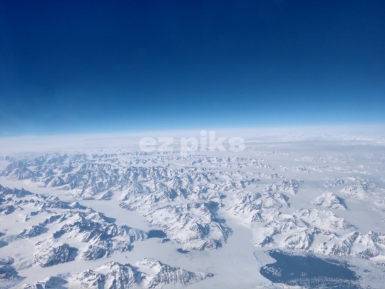A pristine snow-covered expanse in Greenland, where natures serenity meets the breathtaking beauty of icy wilderness.