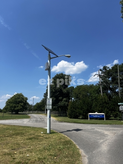 Virginia Beach, VA, USA- 06-26-2024 Solar panel on to of a street lamp powered with solar energy.