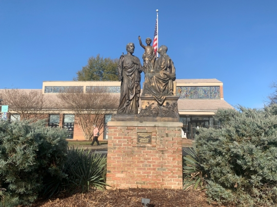 Fredericksburg, VA, USA - 05-07-2025 A bronze statue honors the sacredness of human life and family dignity at a church yard in Fredericksburg, VA, USA.