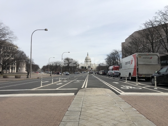 Washington, D.C., USA - 02-14-2019 The dome of the Capitol Building, seat of the U.S. Congress, is seen at the end of Independence Avenue in southwest Washington, D.C., USA.