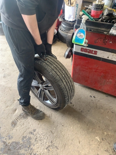 San Francisco, VA, USA - 10-13-2025 Hands-on tire repair with a simple plug.