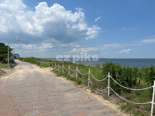 A coastal trail along sea shore in Norfolk City, Virginia, USA.