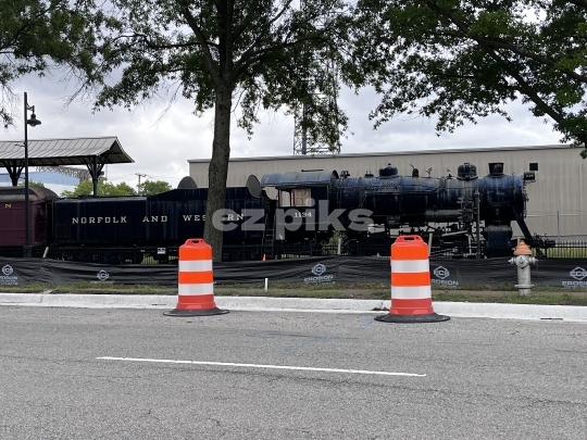 Norfolk, VA, USA- 05152024 Old train on display in an open-air railway museum.