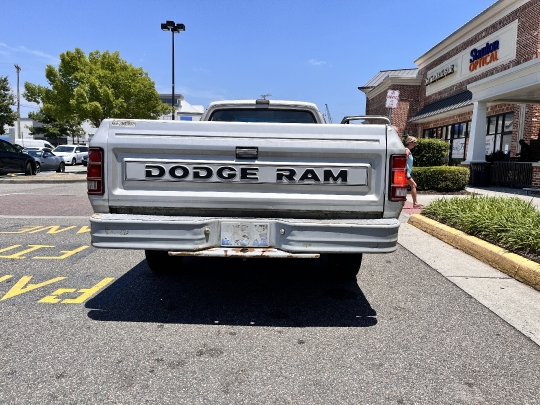 Norfolk, VA, USA- 06262024 Rear view of a renovated clasic Dodge Ram pickup truck probably from 1990s.