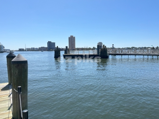 Norfolk, VA, USA - 05072025 The view of Elizabeth River from downtown in Norfolk city in southeast Virginia, USA.