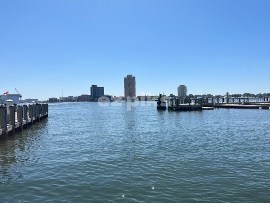 Norfolk, VA, USA - 05072025 The view of Elizabeth River from downtown in Norfolk city in southeast Virginia, USA.