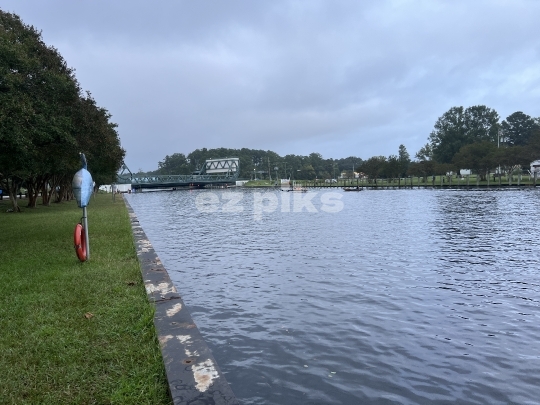 Chesapeake, VA, USA - 09-18-2024 A view of Atlantic intracoastal waterway; Bridge Battle Bridge is seen in the distance.