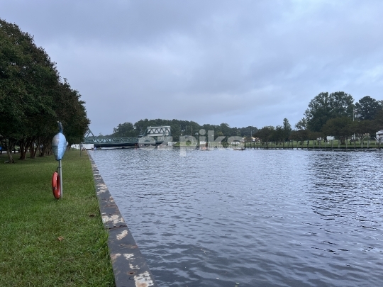 Chesapeake, VA, USA - 09-18-2024 A view of Atlantic intracoastal waterway; Bridge Battle Bridge is seen in the distance.