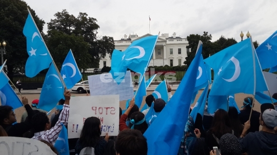 Washington, D.C, USA - September 25, 2015 Muslim Chinese Uighurs in front of the White House protesting the visit of Chinese President Xi Jinping.