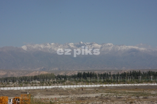 Xinjiang, China: 2011/09/19: Snow covering mountain top in Xinjiang province in northern China.